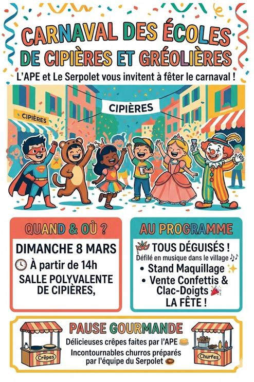 On vous attend nombreux pour le défilé dans les rues de Cipières, parés de vos plus beaux déguisements !!!