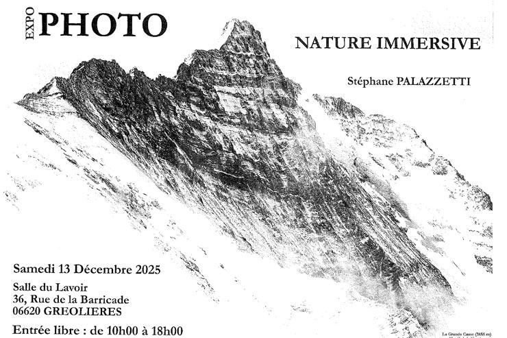 Le13déc.de10h00 à 18h00LieuSalle du lavoir - GréolièresGréolièresEXPOSITIONExpo Photo "Nature Immersive"Ajouter à mon calendrierPhotos de Stéphane PalazzettiEntrée libreSélection de la vue© OpenStreetMap contributorsFermerPrécédentRetour à la listeSuivant