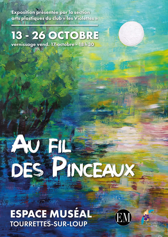 L’Espace Muséal de Tourrettes-sur-Loup présente Au fil des pinceaux, l’exposition collective des membres de la section Arts Plastiques du club Les Violettes, accompagnés par leur professeure, Danielle Holleville. Près de 100 tableaux, réalisés au cours des quatre dernières années, seront ainsi réunis pour témoigner de la diversité et de la vitalité de leur démarche créative.