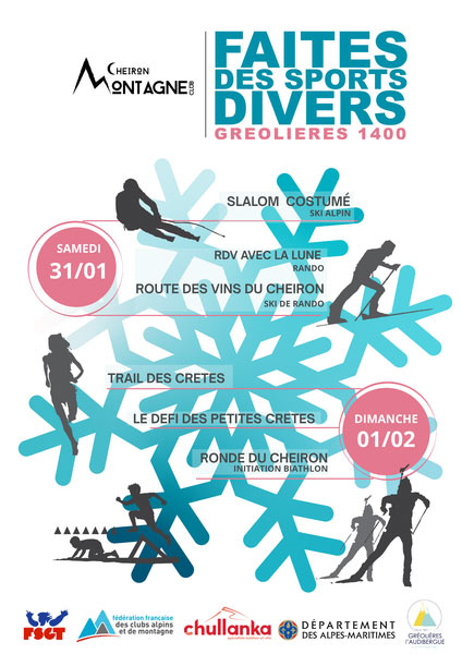 Le Cheiron Montagne Club vous prépare à la Faites des Sports Divers le weekend du samedi 31 janvier et dimanche 1er février 2026. C'est l'occasion pour vous tous de préparer vos bonnes résolutions pour 2026 et de nous rejoindre à Gréo 1400!