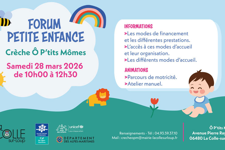 Parents, professionnels ou futurs professionnels… venez découvrir les modes d’accueil du jeune enfant (différentes prestations, modes de financement, conditions d’accès et organisation) à la Colle-sur-Loup, à l’occasion de cette matinée de d’échange, d’information et d’animation avec tous les intervenants de la Petite Enfance de la commune : la CAF, le Relais Départemental Petite Enfance, les crèches de La Colle sur Loup et les assistantes maternelles de la commune.