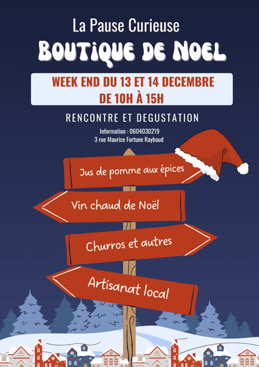 Du13déc.Au14déc.de10h00 à 15h00LieuLe Parc - La Roque-en-ProvenceLa Roque-en-ProvenceLOISIRS, MARCHÉLa pause curieuseAjouter à mon calendrierBoutique de Noël à la pause curieuse de 10 h à 15 h.Sélection de la vue© OpenStreetMap contributorsFermerPrécédentRetour à la listeSuivant