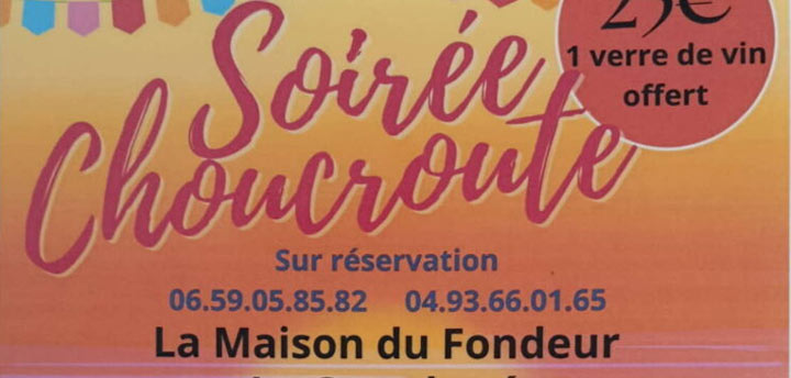Le25oct.de19h00 à 22h00LieuLa maison du fondeurGréolièresLOISIRSSoirée choucrouteAjouter à mon calendrierSur réservation au 06.59.05.85.82 / 04.93.66.01.65Sélection de la vue© OpenStreetMap contributorsFermerPrécédentRetour à la listeSuivant