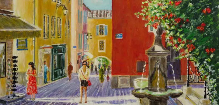 Vous pourrez apprécier les peintures des villes de Daniel Barré, les céramiques de Marie Laglasse, les peintures sur céramique d’Irène Hamilton.